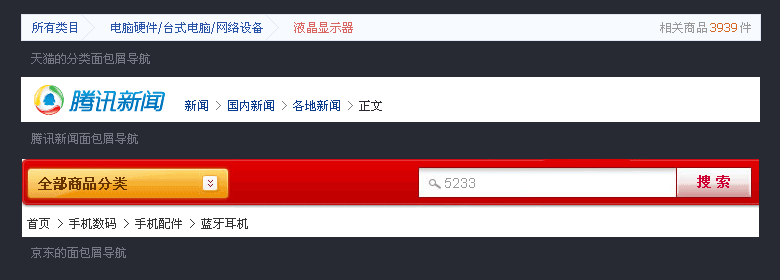 這就是清晰的面包屑導(dǎo)航。綜上,面包屑導(dǎo)航能夠讓復(fù)雜的層級(jí)結(jié)構(gòu)扁平化,使得導(dǎo)航更加輕盈。