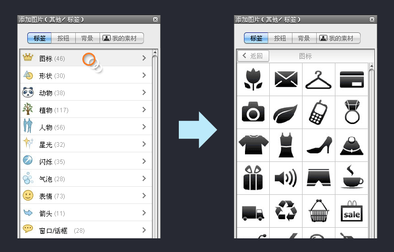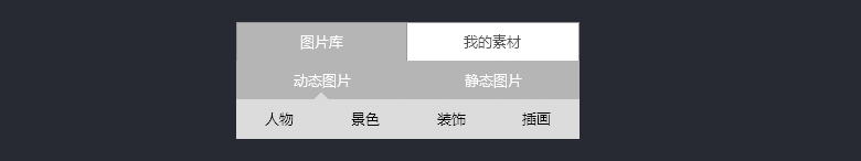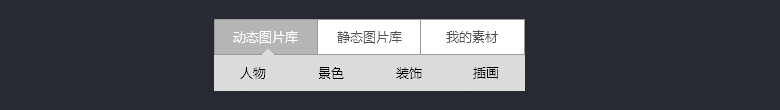 如上圖,圖片庫(kù)包括動(dòng)態(tài)圖片和靜態(tài)圖片,每個(gè)分類下面又有小的分類,這樣的導(dǎo)航層級(jí)在產(chǎn)品中十分常見,略顯臃腫。那么通過合并層級(jí)就可以把導(dǎo)航精簡(jiǎn)到兩級(jí),處理后的導(dǎo)航如下: