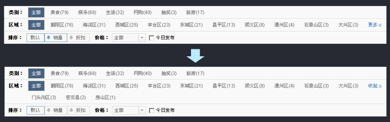 導(dǎo)航的龐大往往是由于層級(jí)過多導(dǎo)致,那么減少層級(jí)的一種有效方法就是合并導(dǎo)航層級(jí),例如把二級(jí)和三級(jí)導(dǎo)航合并,就減少了三級(jí)導(dǎo)航,讓導(dǎo)航輕便一些。