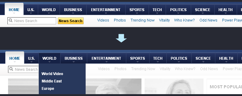 簡(jiǎn)化導(dǎo)航結(jié)構(gòu)的第三種方法是把部分層級(jí)或者導(dǎo)航內(nèi)容隱藏起來,使得導(dǎo)航看上去輕便一些。