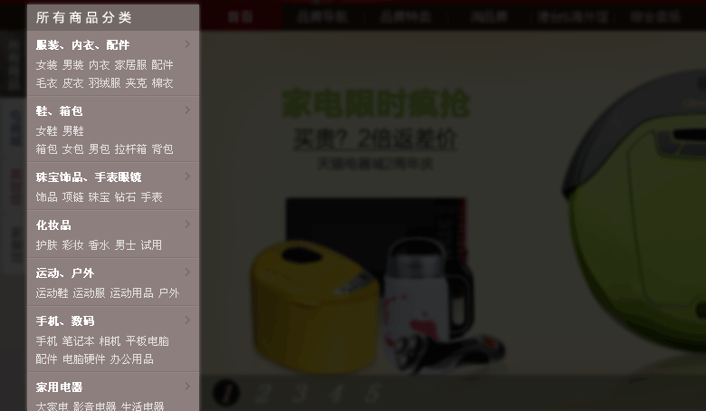 電商首頁(yè)的導(dǎo)航UI上吸引了不少眼球,但是到了結(jié)果頁(yè)導(dǎo)航變成了幾乎沒有裝飾的效果,因?yàn)樵诮Y(jié)果頁(yè),用戶主要是來瀏覽產(chǎn)品,所以導(dǎo)航的作用就弱了。