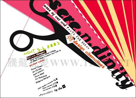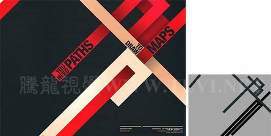 線具有引導(dǎo)視線的作用,在設(shè)計(jì)中應(yīng)用很廣。在下圖平面設(shè)計(jì)作品中,就是運(yùn)用不同粗細(xì)的斜線,把人們的視線引向主題,使主題更加明確。