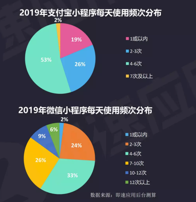 即使支付寶小程序在過去一年增長迅速,用戶基數(shù)帶來的巨大差距仍舊反應(yīng)在月活、日活各項(xiàng)數(shù)據(jù)上。這一方面意味著不同屬性平臺用戶人群廣泛性的差異,比如男女老幼都會(huì)用微信。另一方面,則是應(yīng)用場景豐富度的差異。