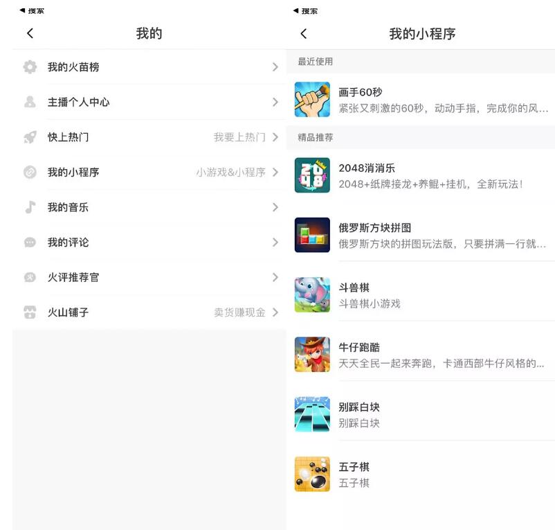 ▲火山小視頻中的小程序入口