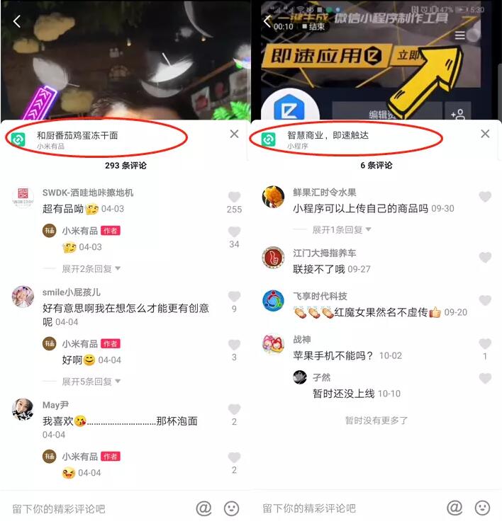 ▲抖音評(píng)論區(qū)小程序入口