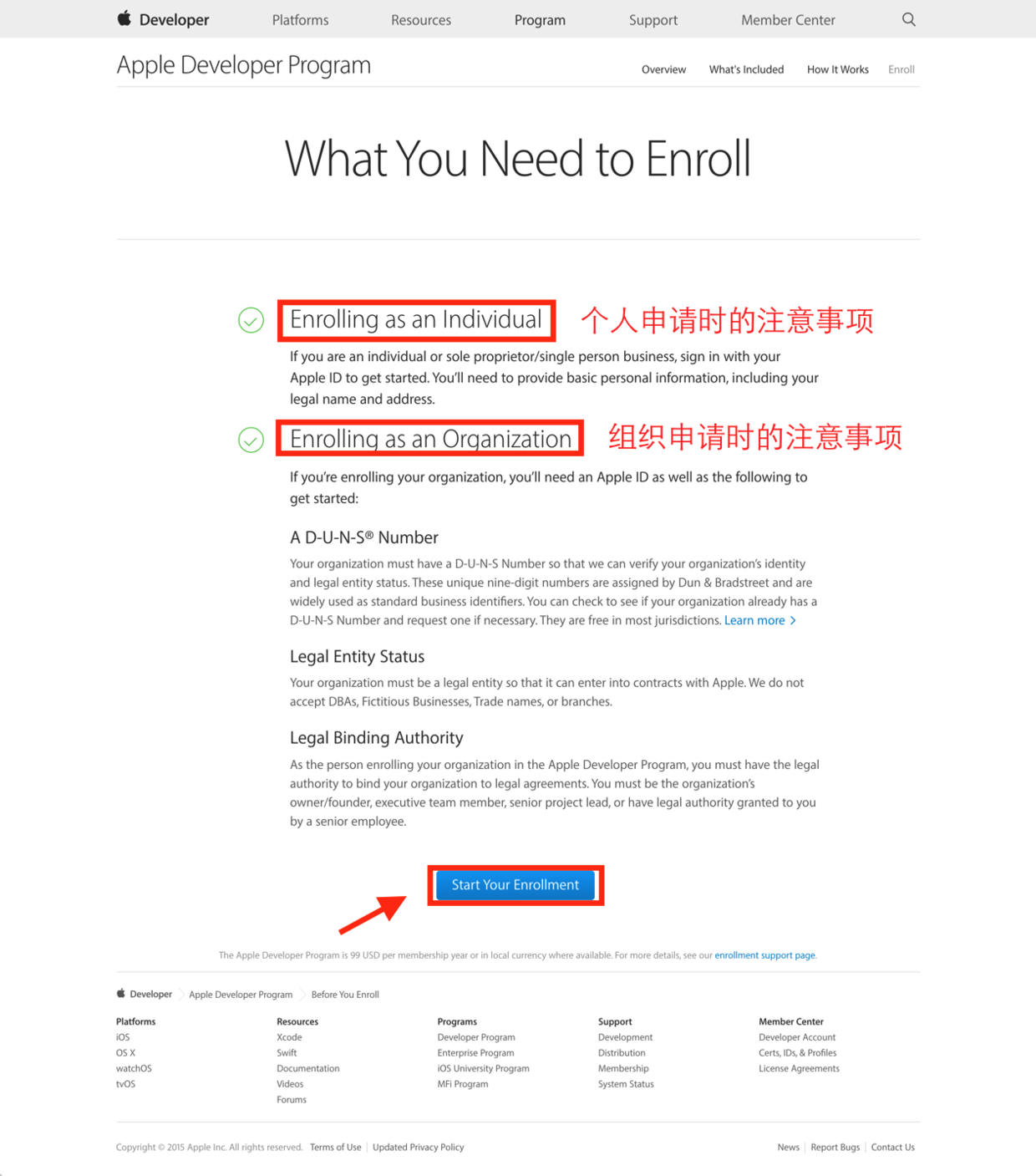 2. 下面的頁(yè)面主要介紹了申請(qǐng)的流程,直接點(diǎn)start your enrollment,進(jìn)入下一頁(yè)面