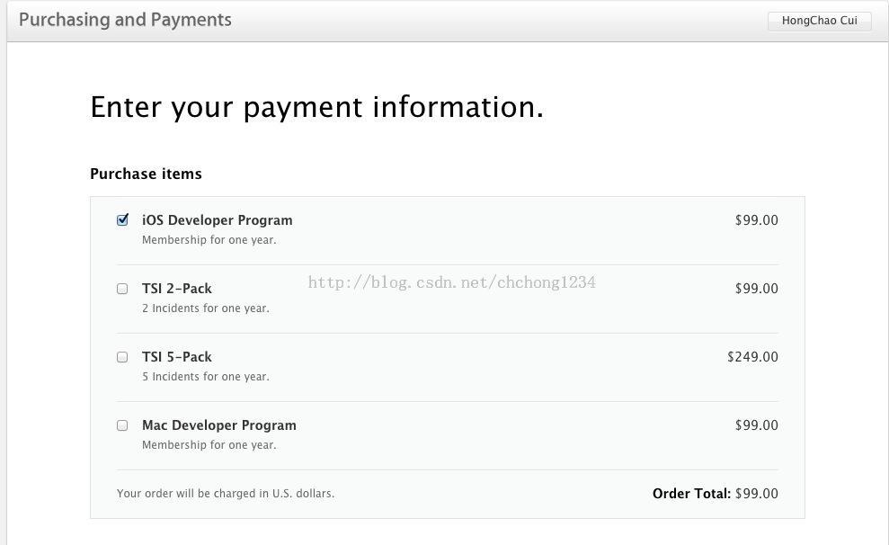 9. 按照蘋(píng)果發(fā)的郵箱里的內(nèi)容操作下一步,首先同意他們的證書(shū)和協(xié)議,然后填寫(xiě)信用卡信息,如下圖: