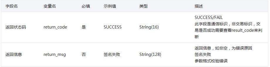 以下字段在return_code為SUCCESS的時(shí)候有返回